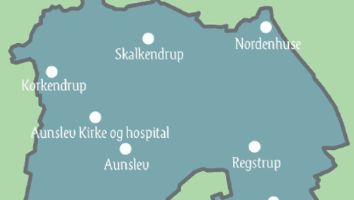 Ved Aunslev Kirke ligger Aunslev Hospital. Hospitalet blev opført i 1758 af Jens Hansen Dreyer og Anne Elisabeth Haman; der ejede den nærliggende herregård, det nuværende Juelsberg. Ægteparret oprettede hospitalet som et hjem for godsets ældre, udtjente arbejdere. Indtil Reformationen hørte fattigforsorg under de katolske klostre. Efter klostrenes nedlæggelse blev antallet af fattige, omvandrende tiggere et stigende samfundsproblem. 1700-tallets fokus på fromhed og næstekærlighed førte til, at der mange steder i landet blev opført hospitaler. Her på siden kan du læse om landsbyen Aunslev. På Aunslev Hospital kunne de fattige ældre få et bedre liv i pagt med de kristne værdier. Aunslev Hospital fungerede som forsorgshjem indtil midten af 1900-tallet.