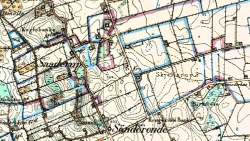 Såderup, eller ”Saaderop” omtales første gang i 1482. ”Sath” betyder korn eller afgrøde, så byen er formentligt blevet anlagt ved den gode jord. Langt den største del af Såderup ligger i dag i Skellerup sogn, men sådan har det ikke altid været. Faktisk lå det meste af byen tidligere i Kullerup Sogn. Såderup er anlagt af bønder fra Kullerup. Med tiden opslugte byen en mindre bebyggelse i Skellerup Sogn, og derved kom Såderup til at bestå af sognebørn, der hørte til enten Kullerup eller Skellerup. Da bønderne i forbindelse med udskiftningen fik marker længere fra byen, blev sognegrænsen lagt rundt om deres enkelte matrikler, og sognegrænsen fik derved et meget særegent udtryk. Sognegrænsen gennem Såderup blev fra 1972 kommunegrænse, man forsimplede grænsedragningen, og størstedelen af Såderup blev derved indlemmet i Skellerup Sogn.